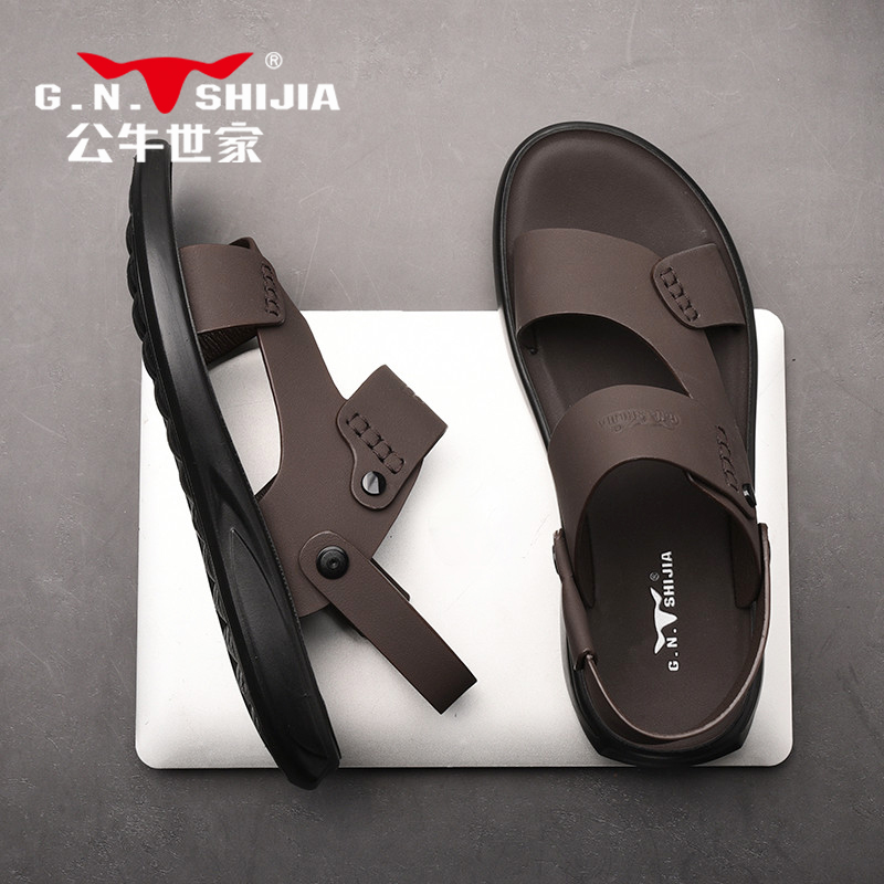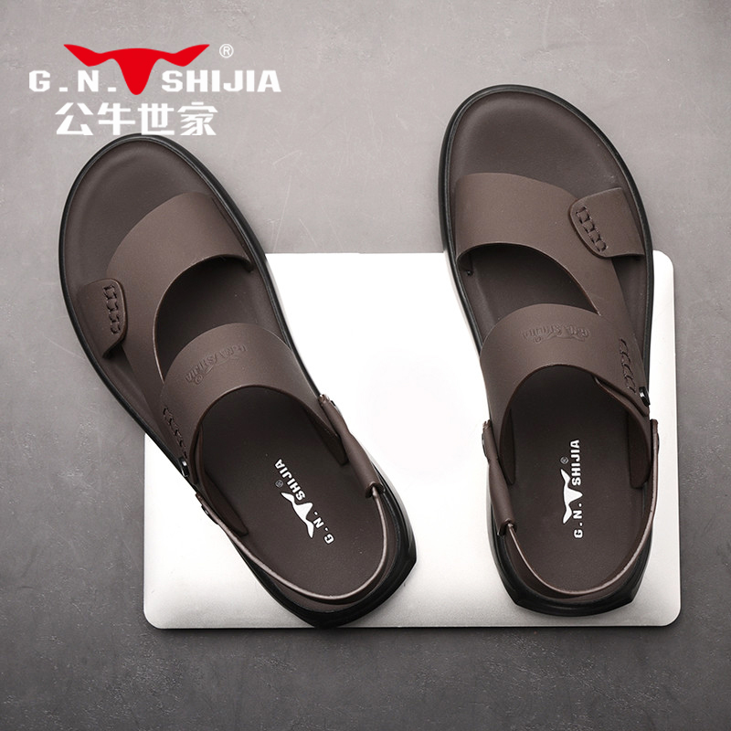 Bull World Home Sandals Men 2022 Summer outside wearing leather sandals Genuine Leather Bull Leather Driving Deodorant Non-slip Beach Slippers