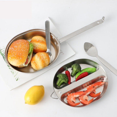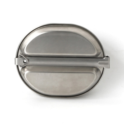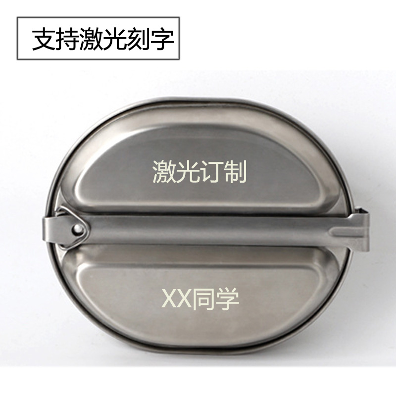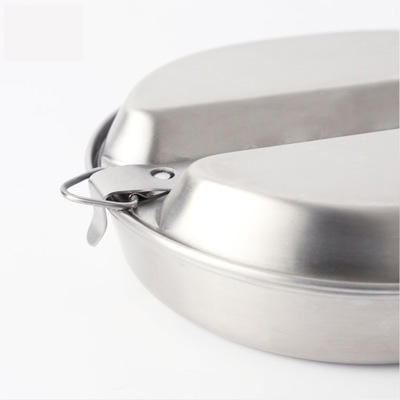 Versatile stainless steel oval long handle lunch box outdoor camping pan portable single soldier American egg-shaped dining box-Taobao
