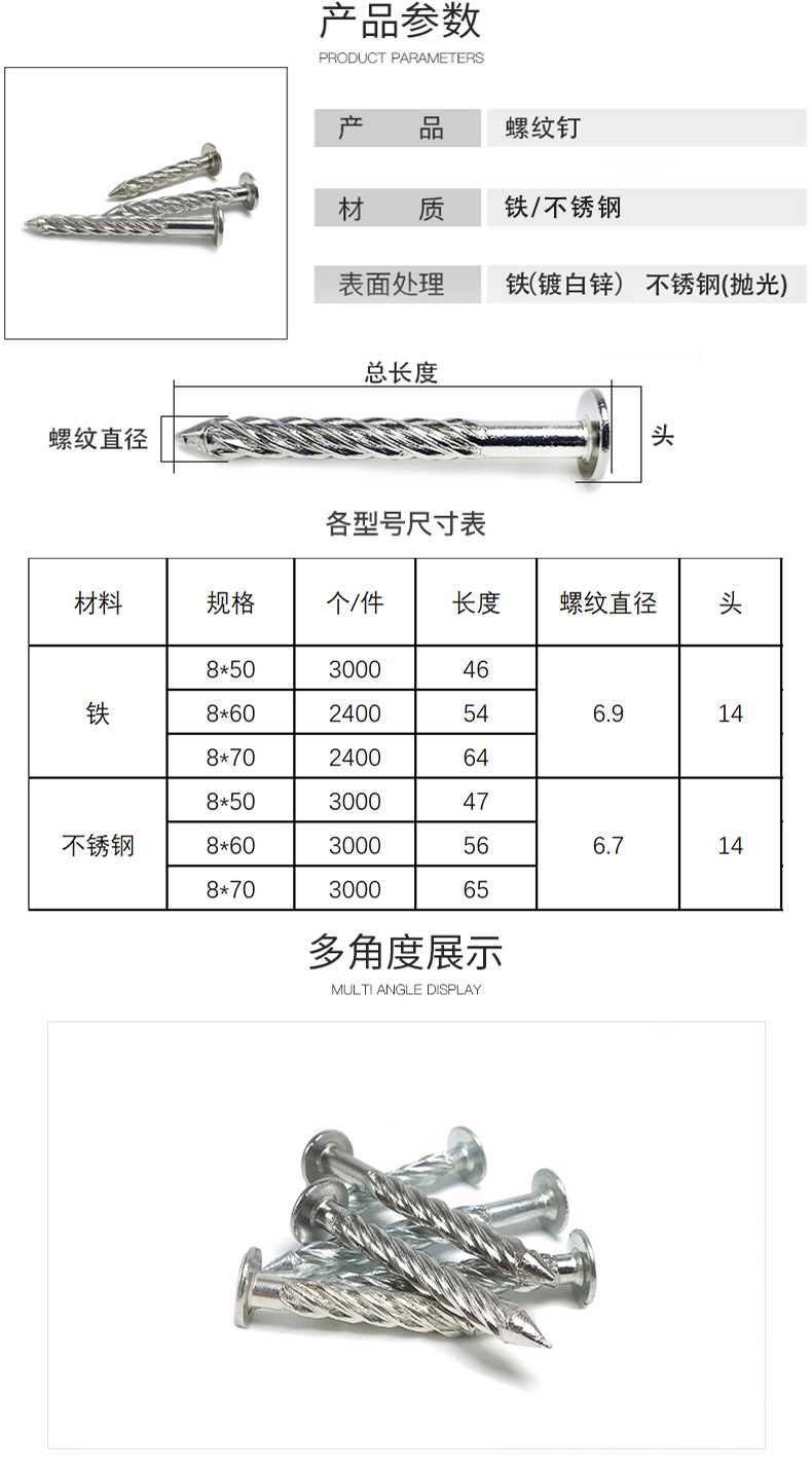 Stainless steel threaded nail M8 flat head galvanized nail pendant fixed cement steel nail twist pressure explosion self-tapping screw