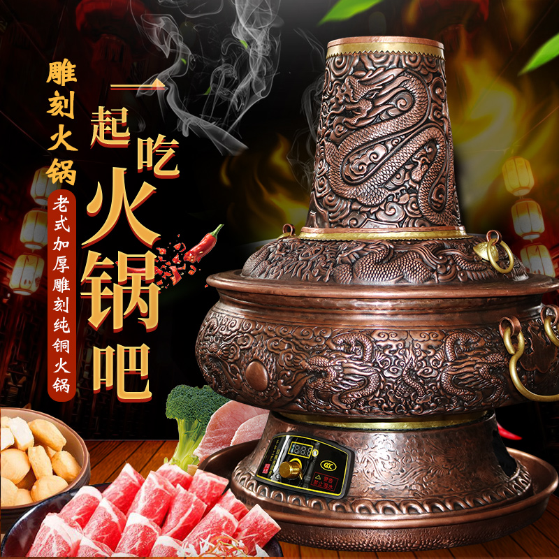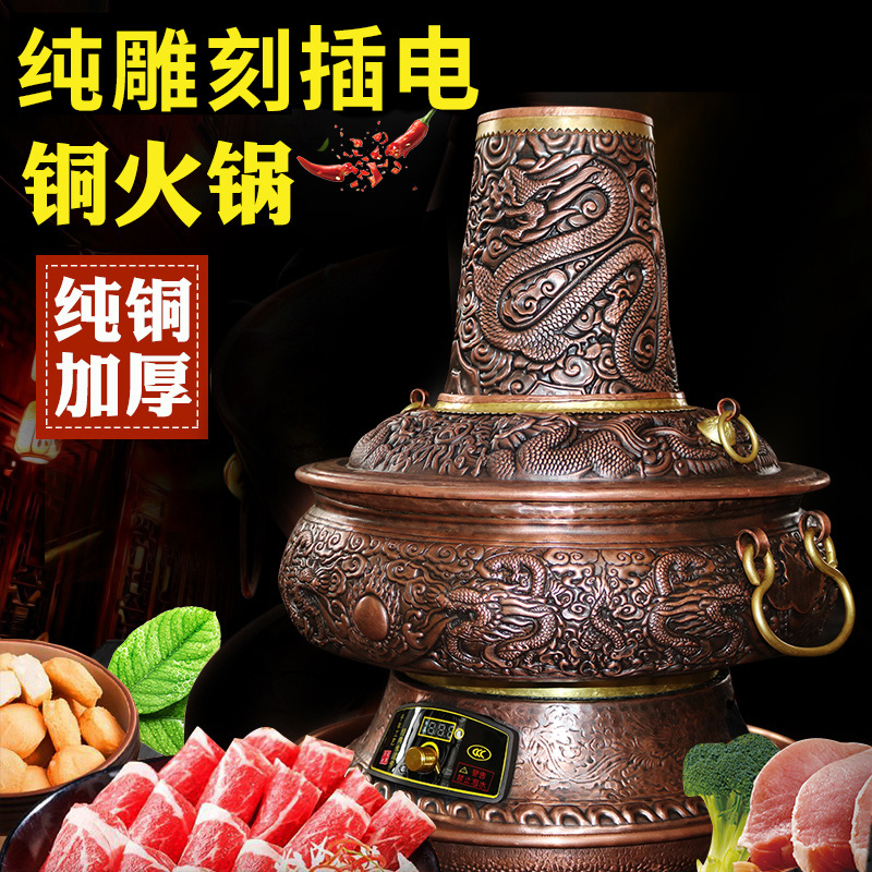 Electric copper hot pot pure copper old-fashioned plug-in charcoal electric carbon dual-use copper thickened home traditional old Beijing shabu-shabu pot