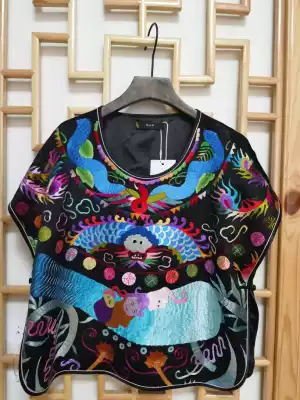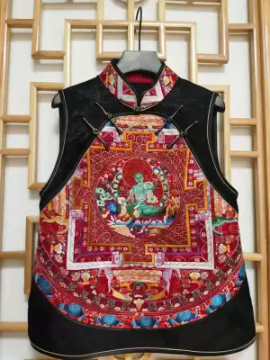Original ethnic style women's clothing Su embroidery hand embroidery three blue flower vest women's waistcoat vest Chinese style retro horse clip