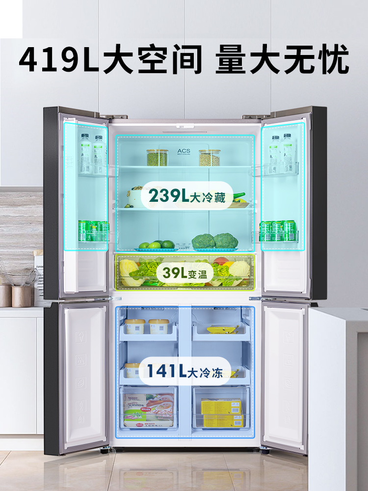 450 Liters Frequency Conversion Level Energy Efficiency Air-cooled Frost-free Creatives 419 Level Frequency Conversion Air-cooled Frost-creamy Grey New Fly 363 Litres Four Doors Straight Cold Micro Creams-Golden 332 Litres Cross Four Doors Straight Cold Micro Creams-Grey 40