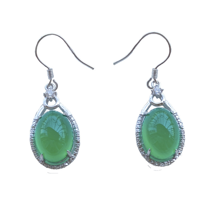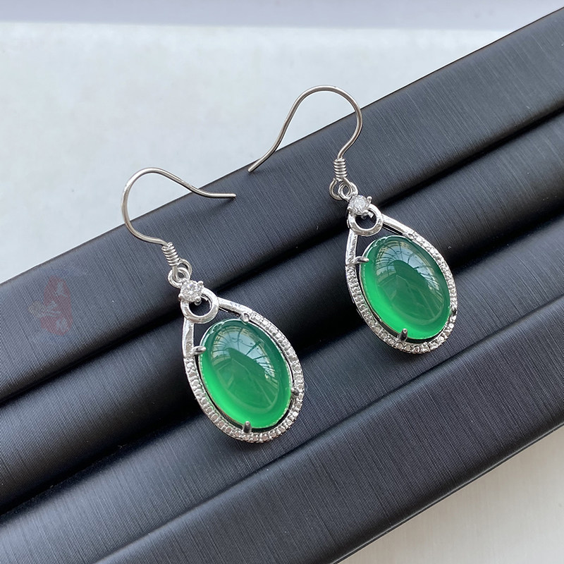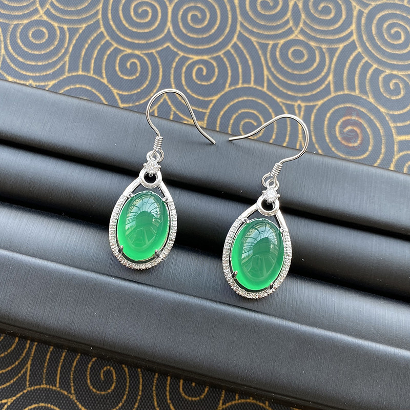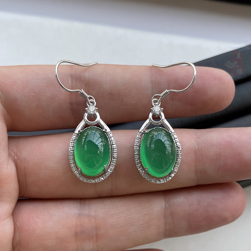 Ice Seed Jade Medullary Pendant Emerald Color Progenitor Green Temperament Long Version Jade Earrings Female Jewel 925 Silver Agate Ear Pin