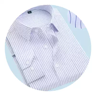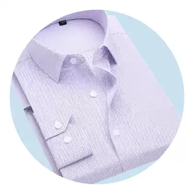 Lanben autumn thin long sleeve shirt men business professional dress-free ironing purple stripe dad dress casual middle-aged
