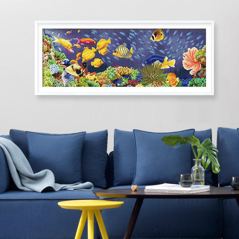 Cross embroidered 2022 new line embroidered seabed world large living room home full embroidered scenic dining room handmade own embroidery