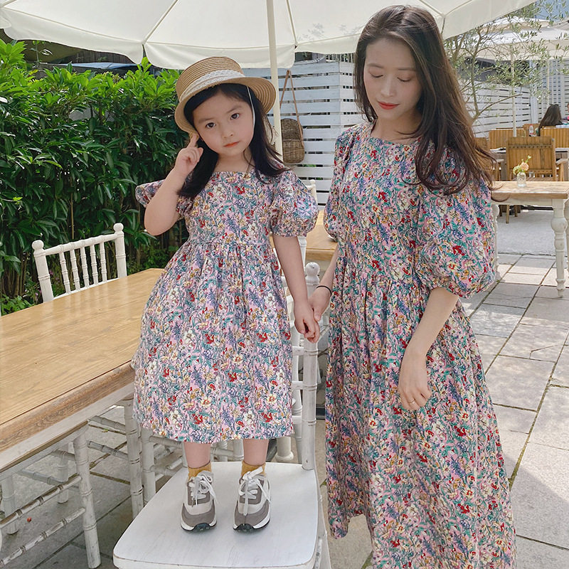 Parent-child dress plus size fat mother 2020 summer new girls' chiffon floral dress fashion foreign style mother and daughter dress trend