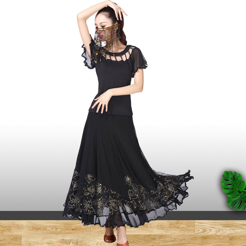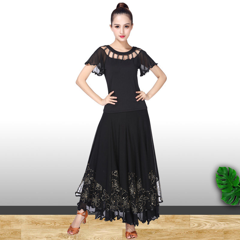 Modern modern dance long dress Practice dress Social dance Large skirt National standard dance Waltz square dance Group dress suit