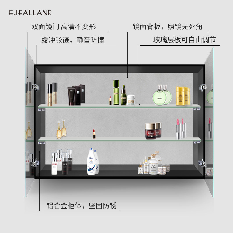 Support custom size Default black Platinum and silver Please note Width 400 height 800 (single door hinge left) Mirror backplate Double-sided mirror cabinet door Black cabinet width 500 height 800