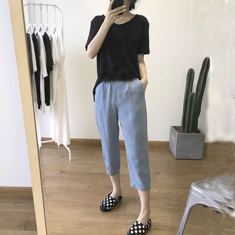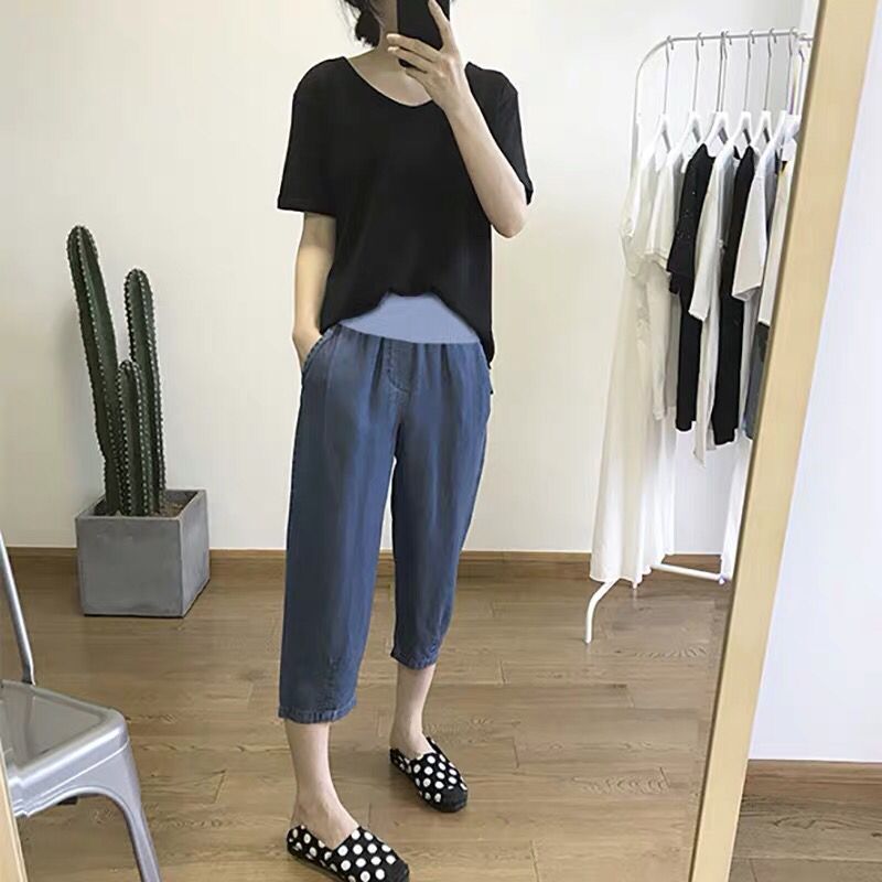 Pregnant Woman Pants Summer Thin SILK JEANS NET RED CASUAL 70% ICE SILK OLD DADDY HARUN PANTS LOOSE AND SLIM