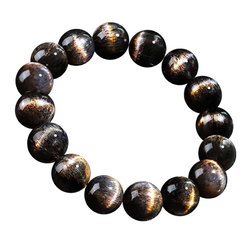 Hansu pure natural black gold backbone sun stone cross starlight crystal bracelet male and female gold cat's eye moonlight feldspar