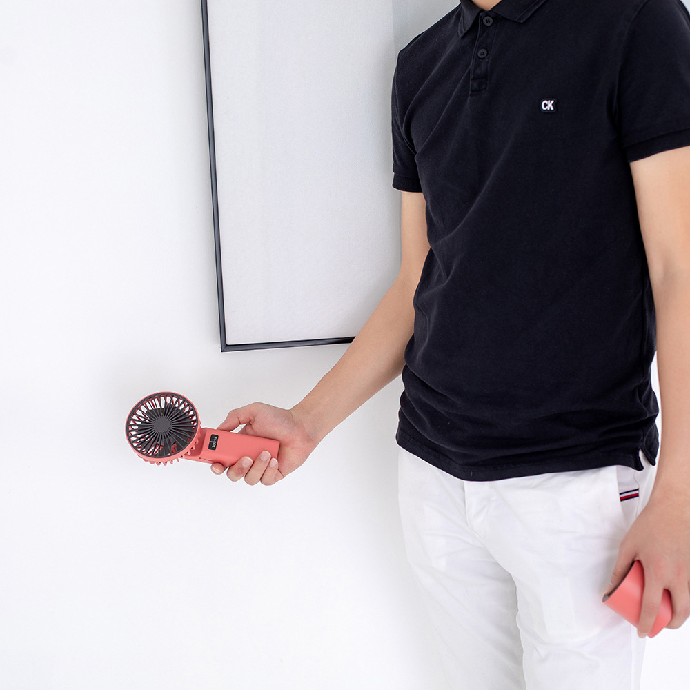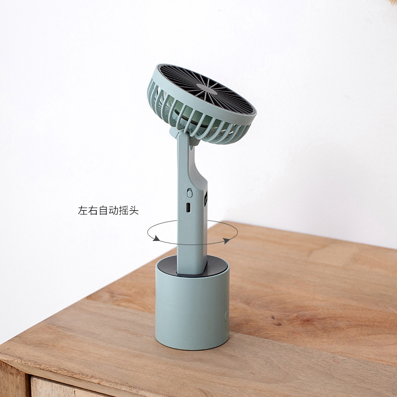 Handheld ultra-silent mini USB small fan portable hand holding rechargeable five gear wind LED display electric quantity automatic shaking office desktop desktop large wind mute student dorm hand grab