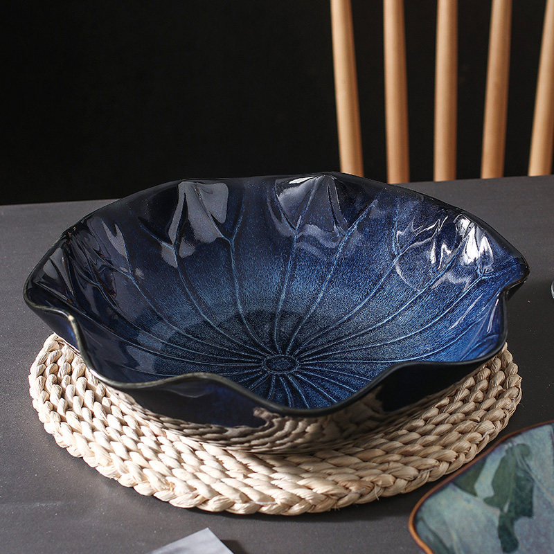 Home Ceramics Mega Bowl Public Day Style Big Bowl Creative Kilns for Water Boiling Fish Large Bowl Lotus Leaf Super Soup Bowl Cutlery