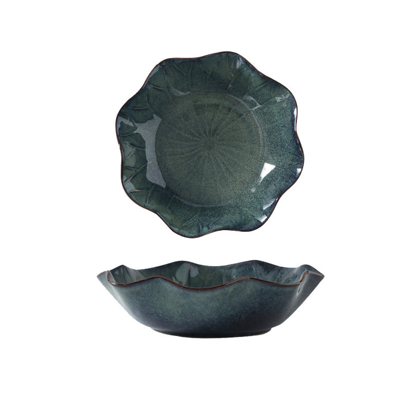 Lotus leaf deep pan blue glaze 12 inch lotus leaf dark pan mist green 12 inch
