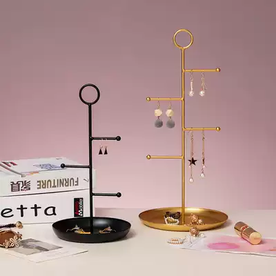 Nordic light luxury creative wrought iron jewelry rack small tray Girls dressing table Earrings drop earrings jewelry storage display rack