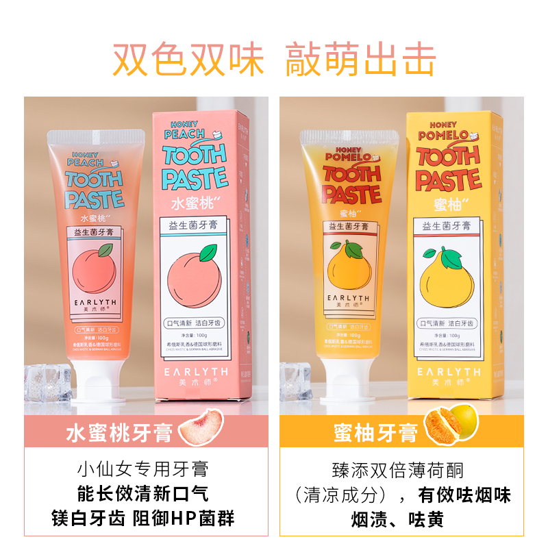 Artist Toothpaste Go Yellow Toothpaste to Spelly Fresh Peach Fruit Probiotic Toothpaste
