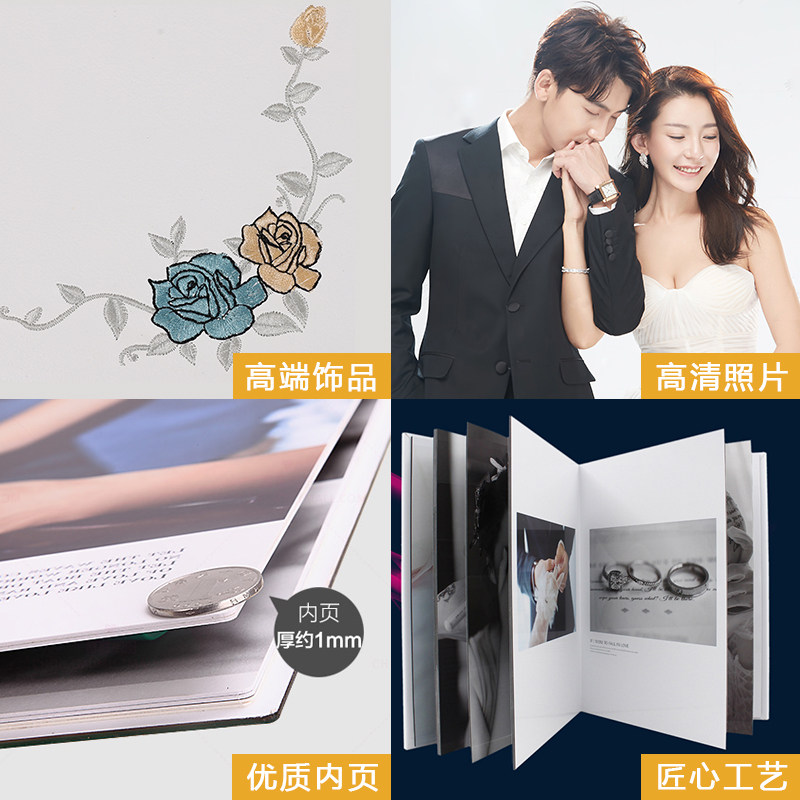 Wedding Photo Album Custom High-end Photo Studio 10 inch 15 inch White Photo Embroidered Rose Wedding Photo Album Production