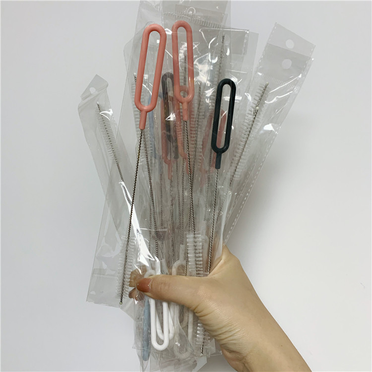 Pure colour minima can hang high quality nylon milk bottle nozzle brushed stainless steel tube brushed straw brush
