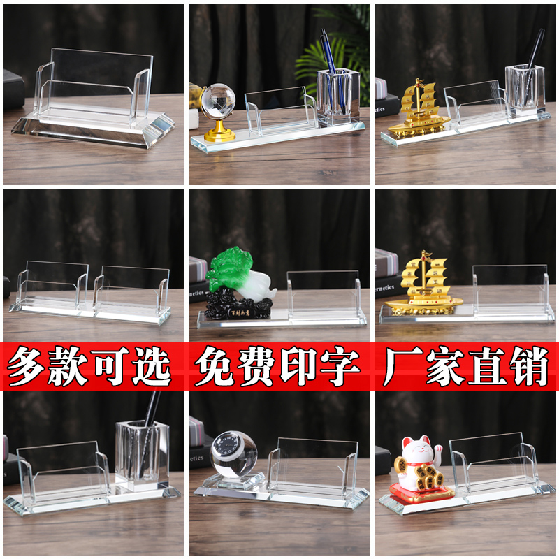 Business card box desktop business high-end male and female business card box personality creative custom lettering logo large capacity double storage box office business card box ornament transparent crystal business card holder