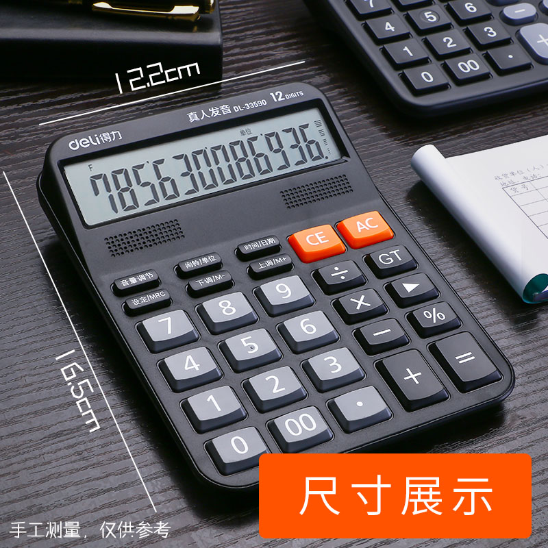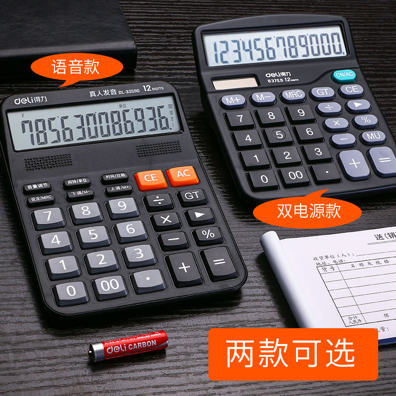 Deli calculator Small portable dual power calculator for office accounting Solar energy Student with voice computer Large 12-bit financial multi-function electronic computer