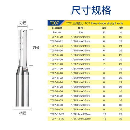 Sichuan Wood Blade Knife Numerical Control Engraving Machine Wood Cutter Three-Edged Open Material Drilling Slotted Cutting Edge Special T007