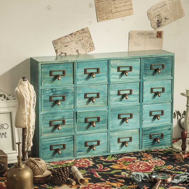 Nine-grid drawers-old color nine-square drawers-Mediterranean blue sixteen-square drawers-old color sixteen-square-Mediterranean Blue