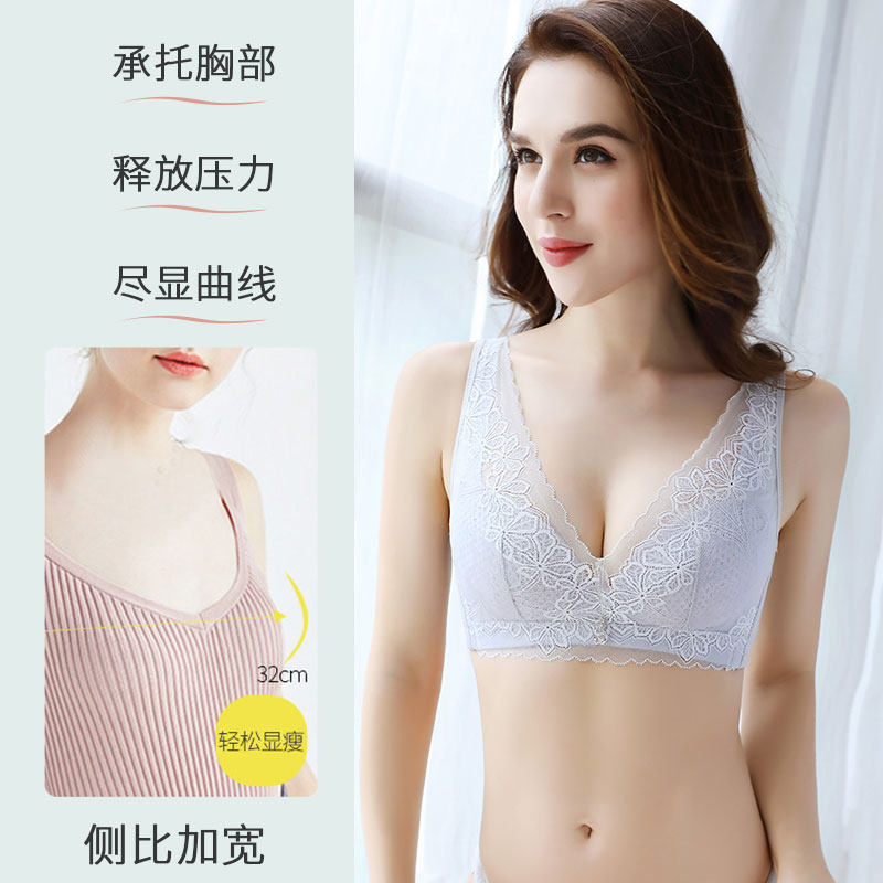Ultra thin underwear female steel ring without steel ring large chest display small text bra large size for large size to gather adjusted type of auxiliary milk anti-drooping summer