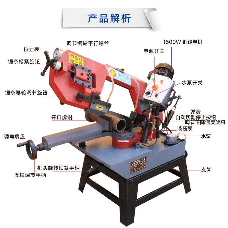 9-inch band saw bed metal saw hydraulic stainless steel horizontal cutting saw high-power commercial woodworking table shaped saw
