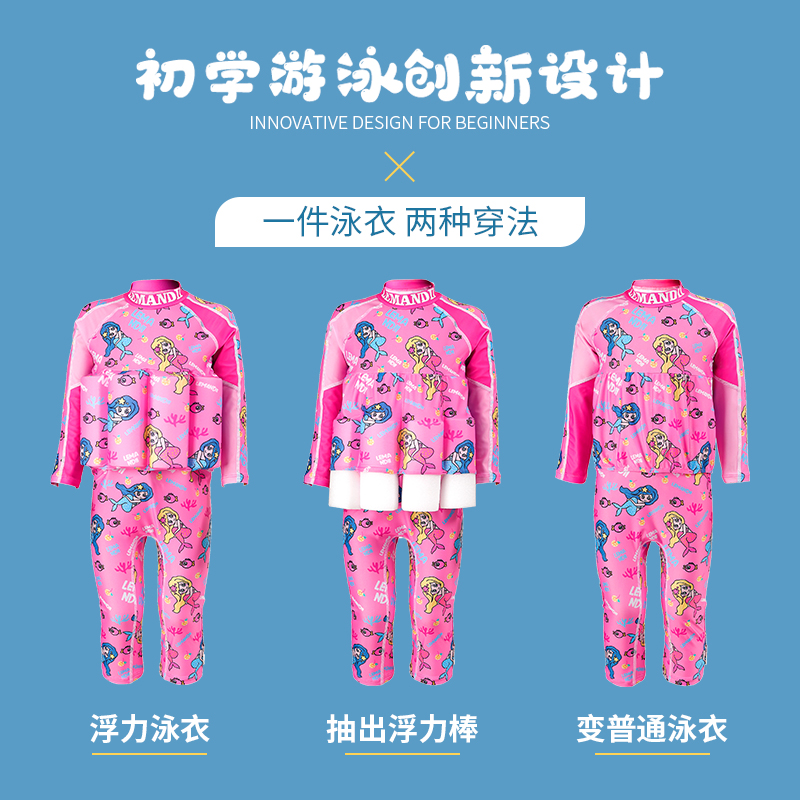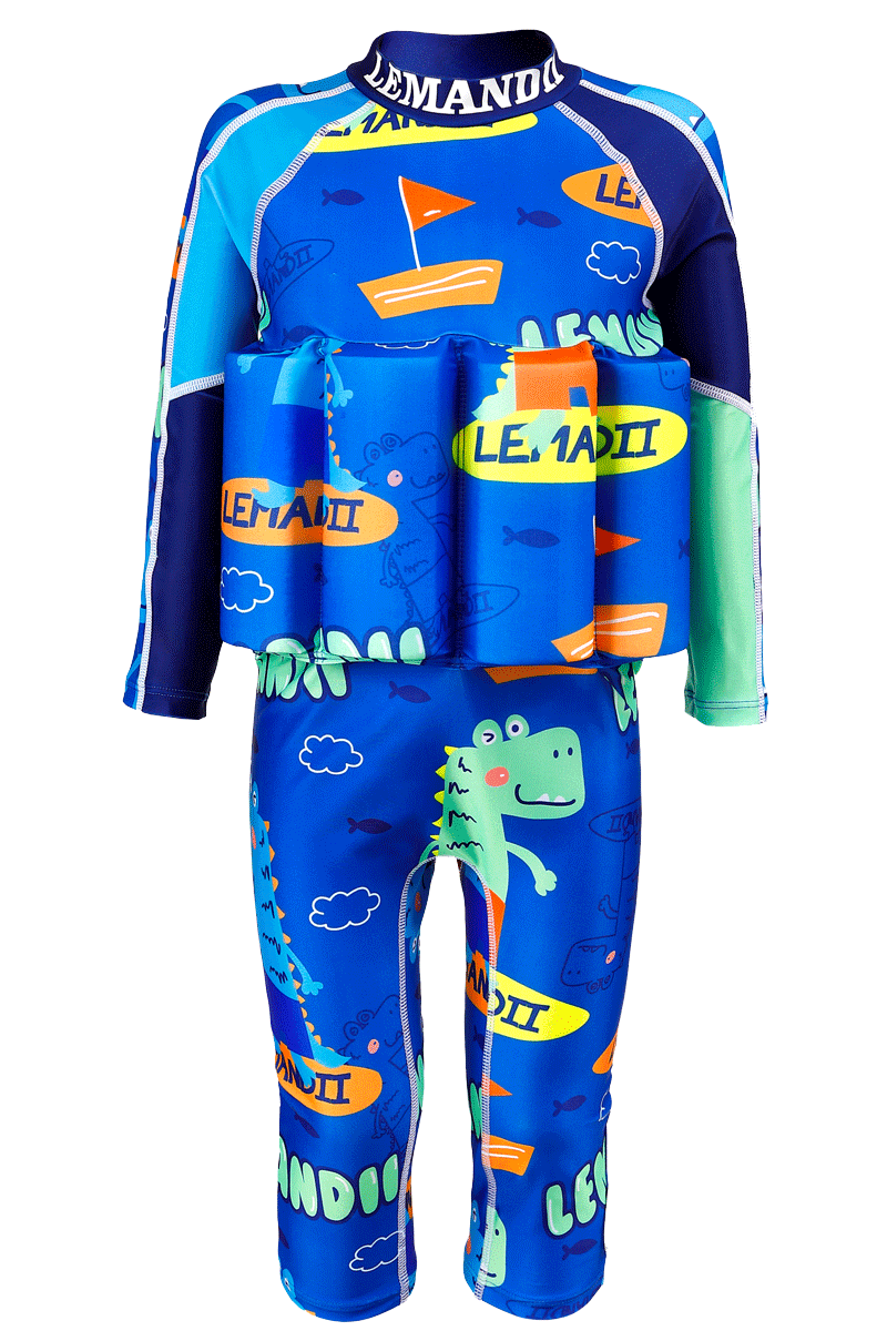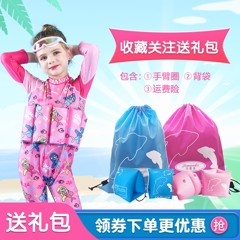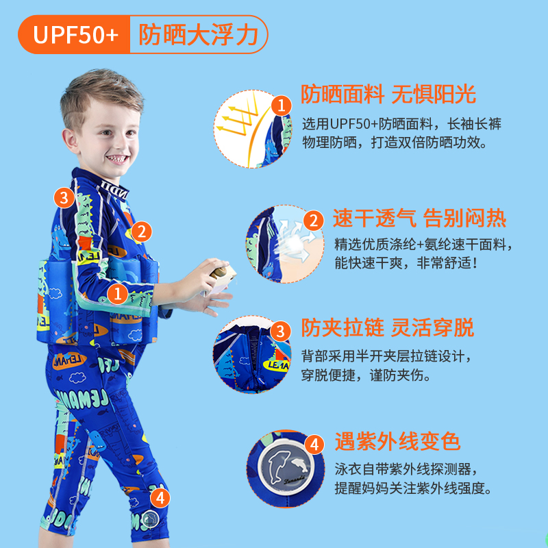 Lemandi children's buoyancy swimsuit Male and female children's one-piece sunscreen quick-drying long-sleeved trousers Baby with buoyancy swimsuit
