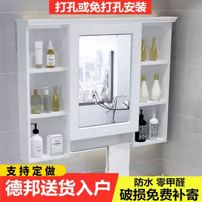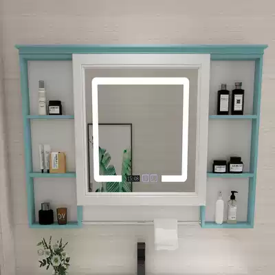 Carbon fiber bathroom mirror cabinet wall-mounted dressing room separate rack toilet mirror box storage storage cosmetic mirror