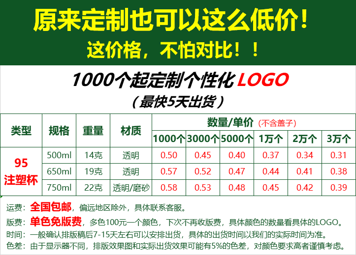 95 caliber injection molding cup drink cup transparent thickened hot and cold fruit tea bubble tea packed plastic cup net red cup