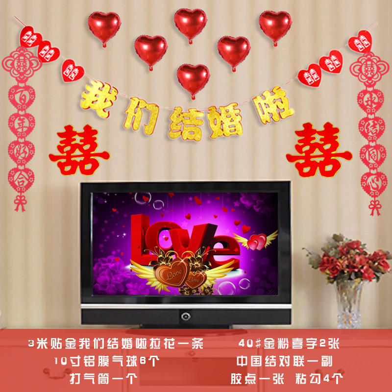TV background we got married package TV background LOVE package TV background Tao Xinxi package Chinese knot couplet we got married lintel Happy character Chinese couplet couplet