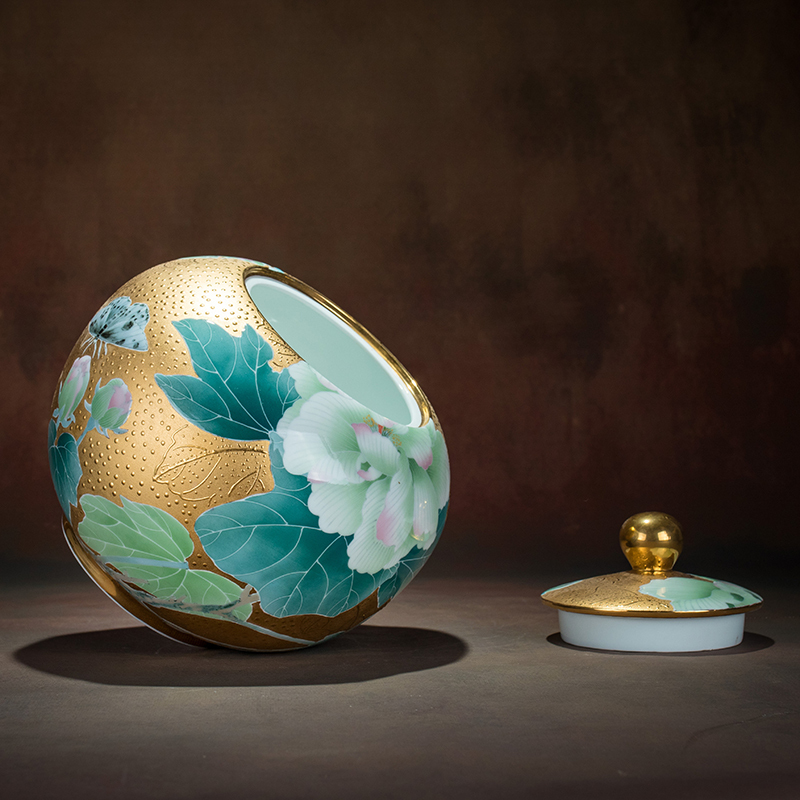 Master of the Provincial Master Handpainted 999 True Gold Golden Craftsmanship First Man Province Artificial Beauty Master Shaw Jianhui Tea Leaf Jars