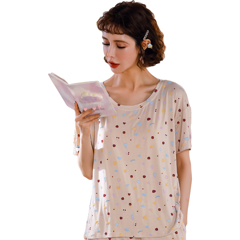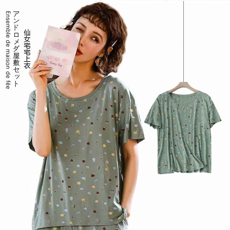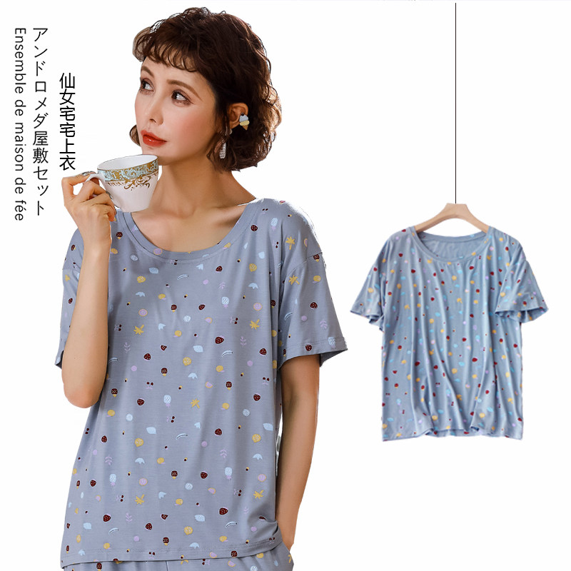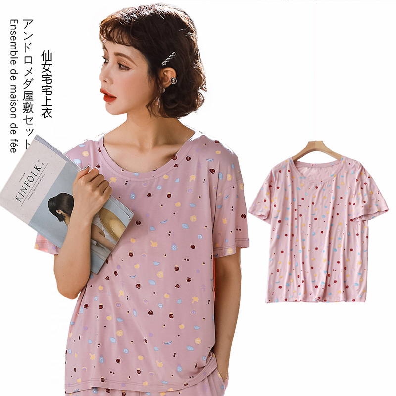 Ice silk short-sleeved T-shirt loose thin section female printing simple drape quick-drying sports home wear pajamas yoga top
