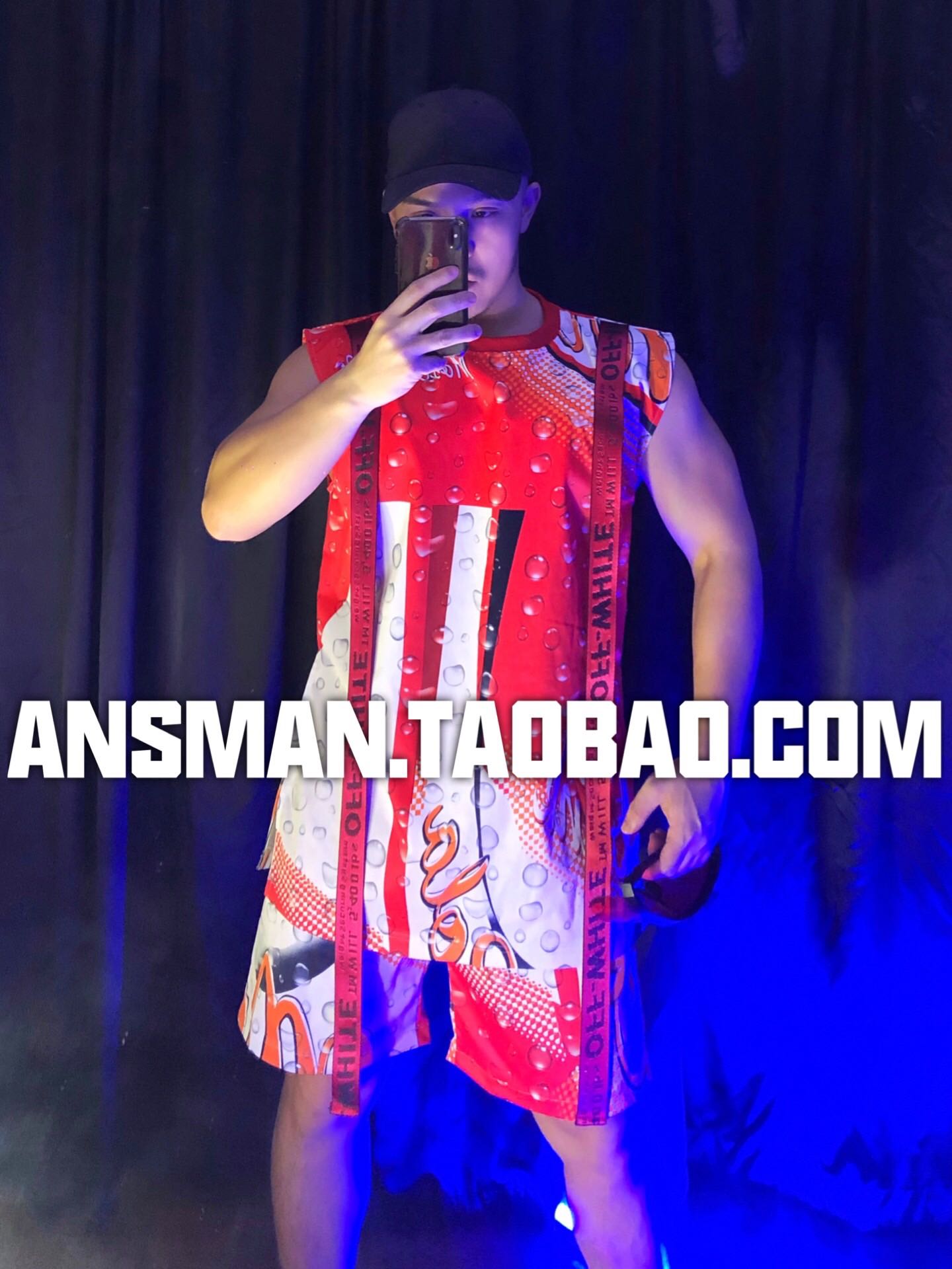 Nightclub bar male singer DJ DS GOGO hip hop Coke printed hip-hop loose vest to play suit