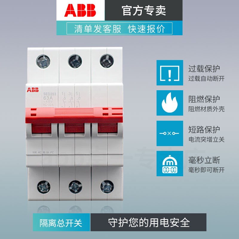 ABB home total electric gate switch isolation switch open circuit air switch 2P4P63A short-circuit power-off leakage protection