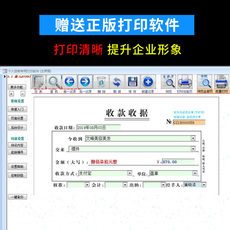 Machine beating documents triptych collections receipt two couplets type no carbon rewrites photocopying paper uniform charges special joint single printing software print customized delivery access library sales list book for wholesale