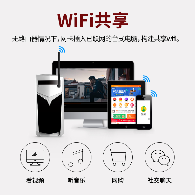 High gain antenna] Tenda U6 drive-free USB wireless network card desktop laptop wifi signal drive-free transmitter receiver portable wi-fi network home unlimited mini