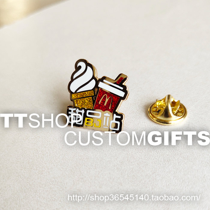 McDonald's Dessert Station Flash Pink Badge - Ice Cream Cylindrical Drink Badge Badge - Fine Metal Pins