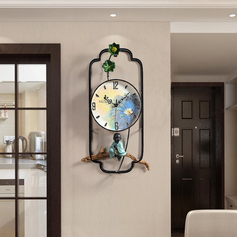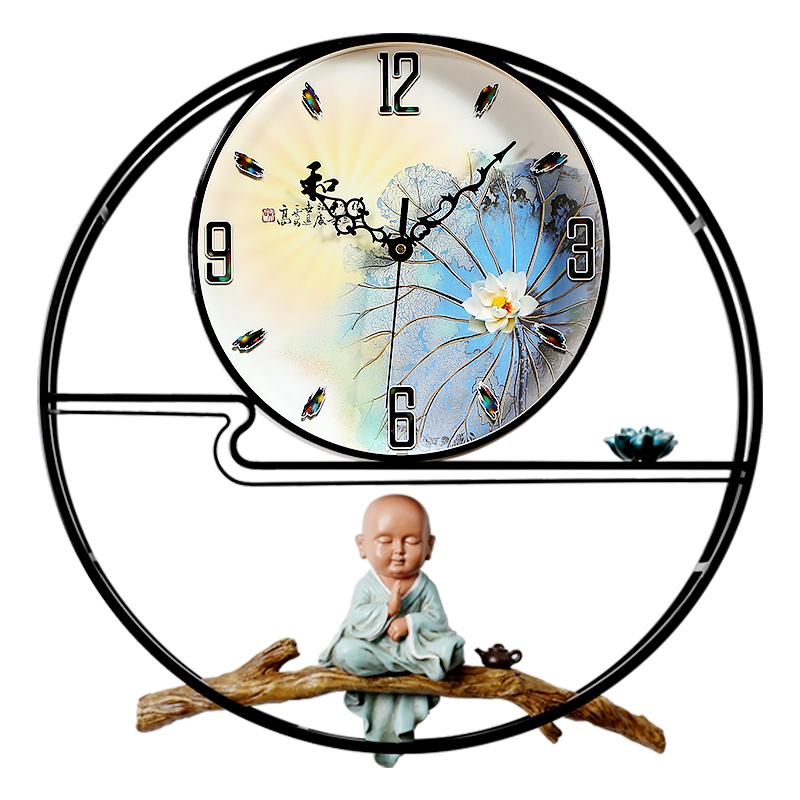 New Chinese style Buddha living room wall clock Home Zen Chinese style watch fashion atmospheric art clock wall decoration