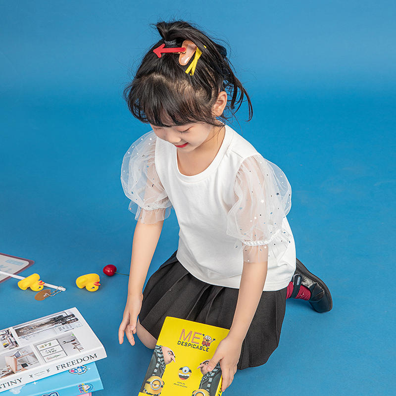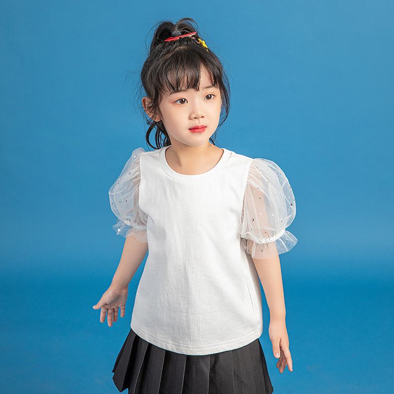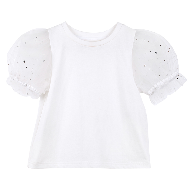 Miss Sunny Original Girls ' mesh bubble Sleeves White T-shirt women's loose 2021 summer design niche top