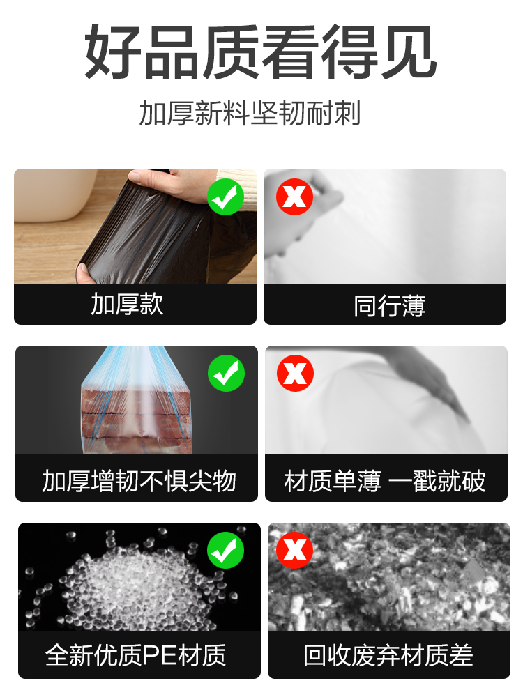 Home Garbage Bag CUHK Trumpet Disposable Portable Black Home Plastic Bag Thickened Garbage Sorting Bag Roll