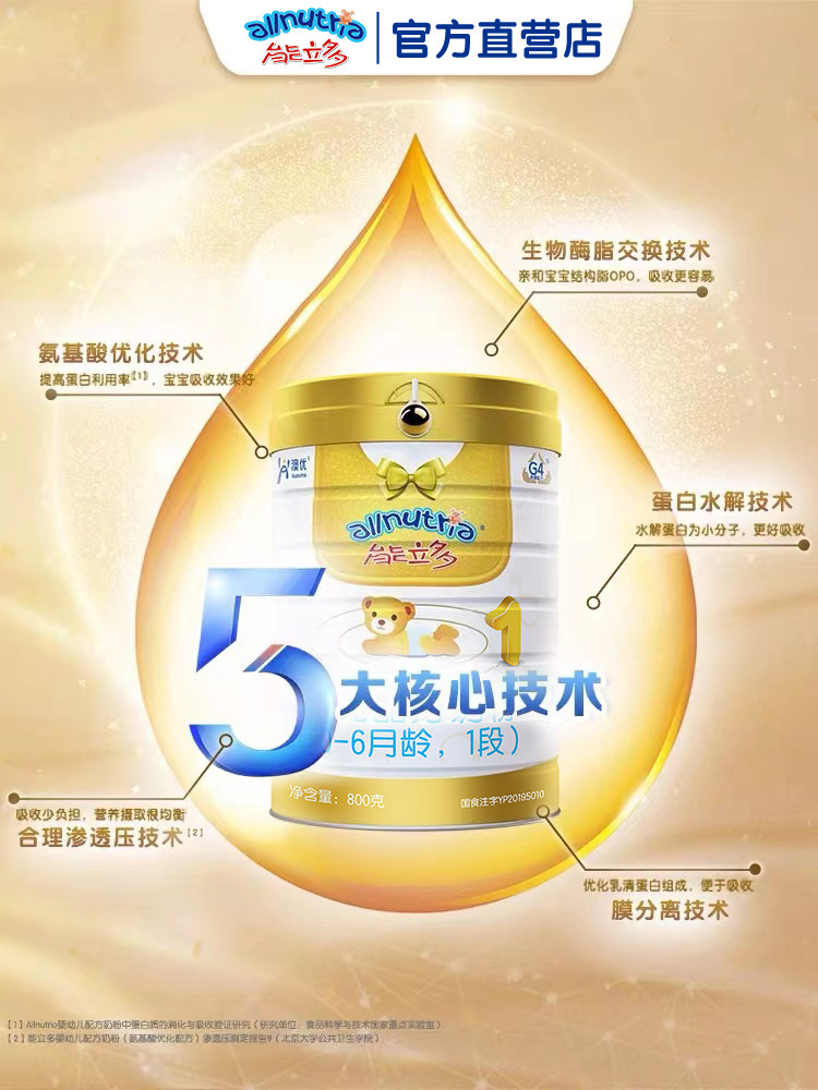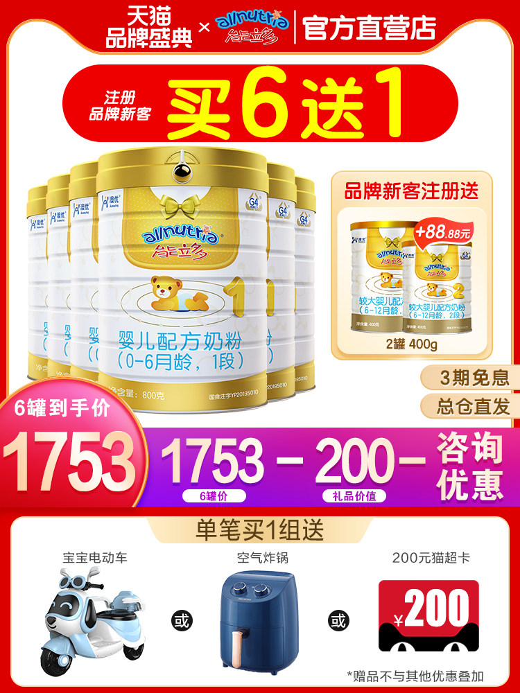 Ausnutria can Lido newborn baby 1 segment 800g*6 cans of formula milk powder opo small molecule ability multi-infant milk powder