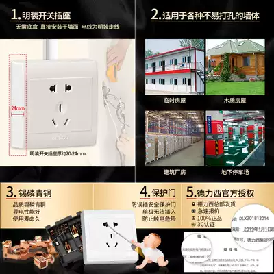 Delixi Ming switch socket one open five-hole Open wire box household wall 86 type ultra-thin porous panel socket