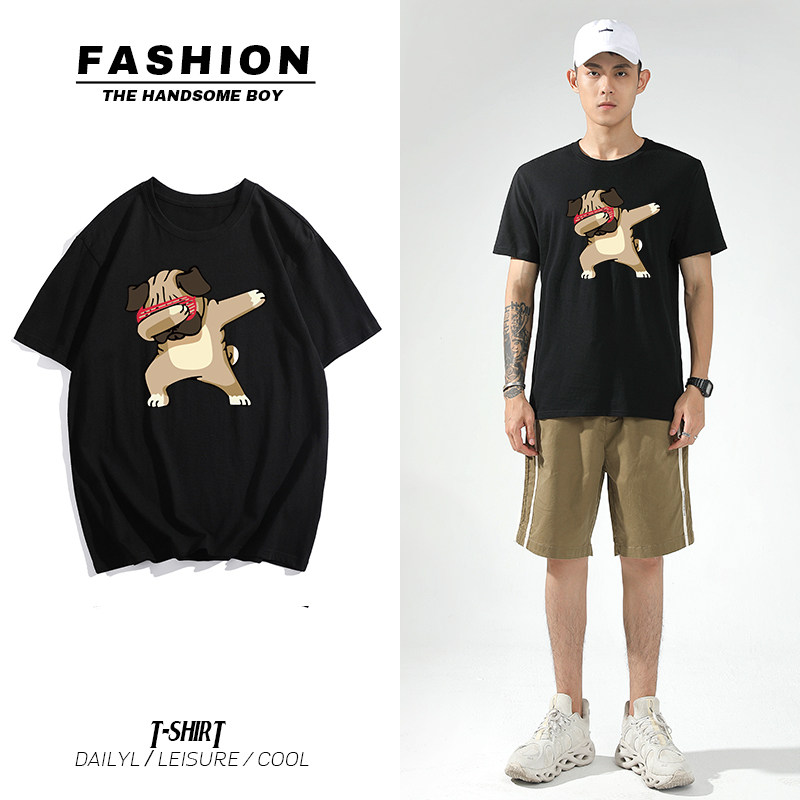Summer short-sleeved T-shirt Men's base shirt Korean version of the tide brand loose men's trend cotton top round neck half sleeve T-shirt