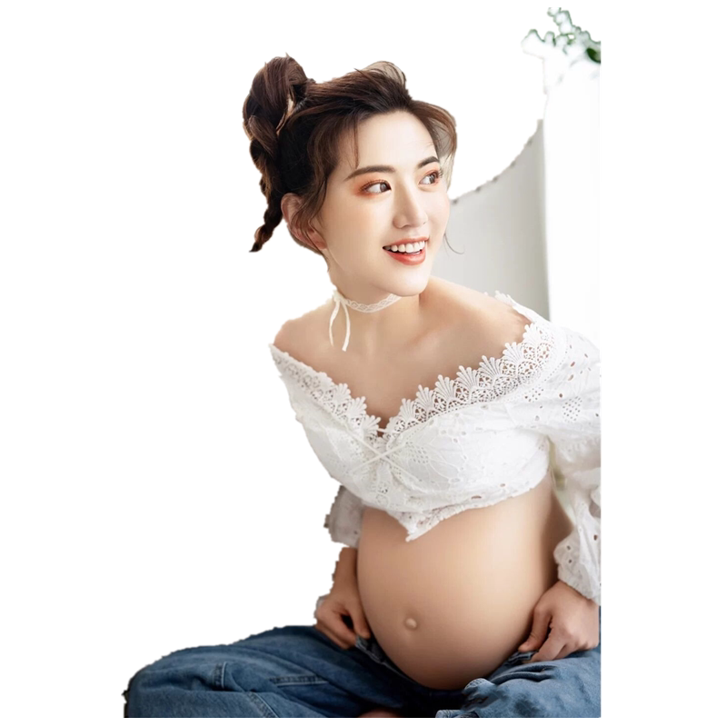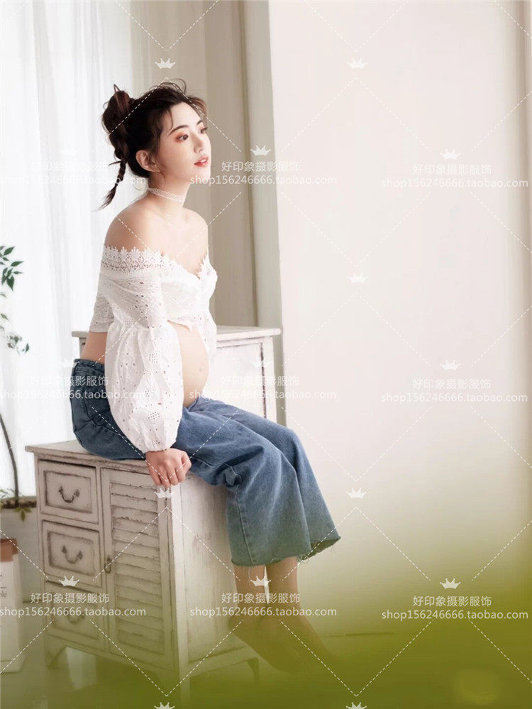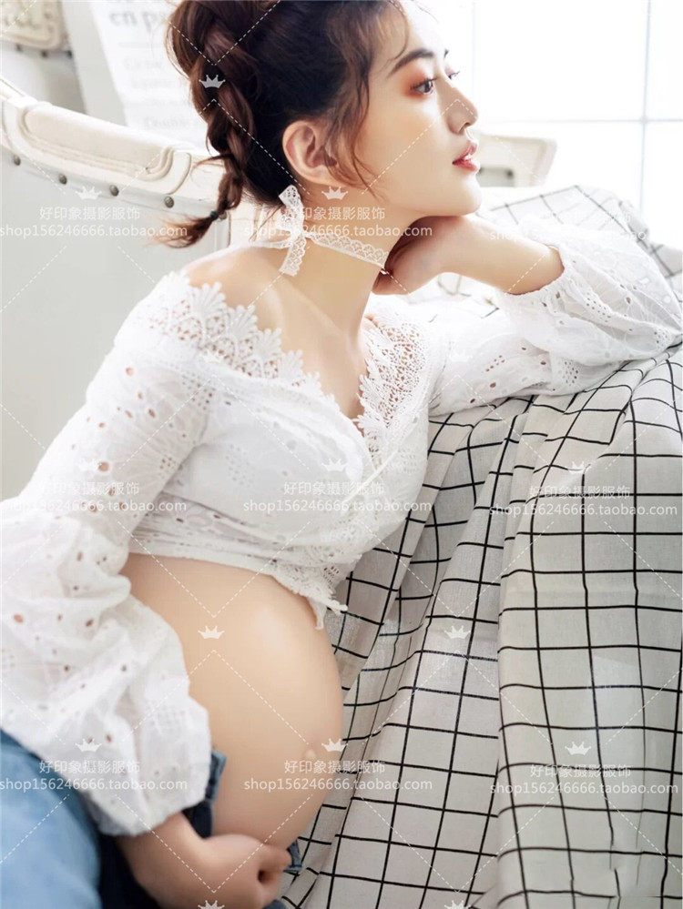 20 New Photos Photo Gallery Pregnant Woman Photo Clothing Sen Women's Department Writing True Themed Clothing Han Edition Reveal Navel Photography Gestation Gestation