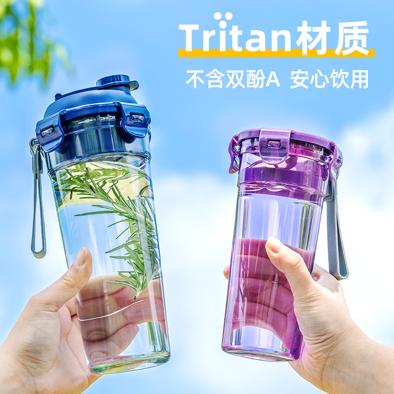 Le buckle water cup female portable sports straight drink cup summer male tea cup plastic Le buckle Tritan material cup
