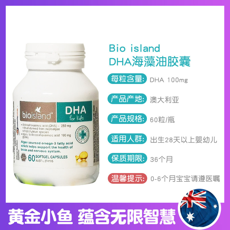 Australia bio Island Seaweed oil for infants and young children DHA60 tablets to promote the baby's eye and brain Baiaolande