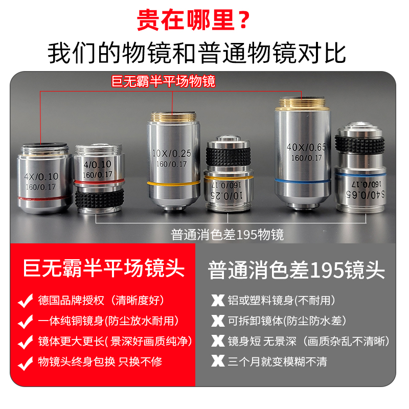 Refuse to use inferior lenses Insist on using an integrated pure copper lens (Tmall flagship store) Tmall quality 100% to protect the interests of customers (high-end microscope monopoly) Large factory after-sales lifelong accessories do not go off the shelves Do not brag Do not run away (one-on-one technical guidance) First