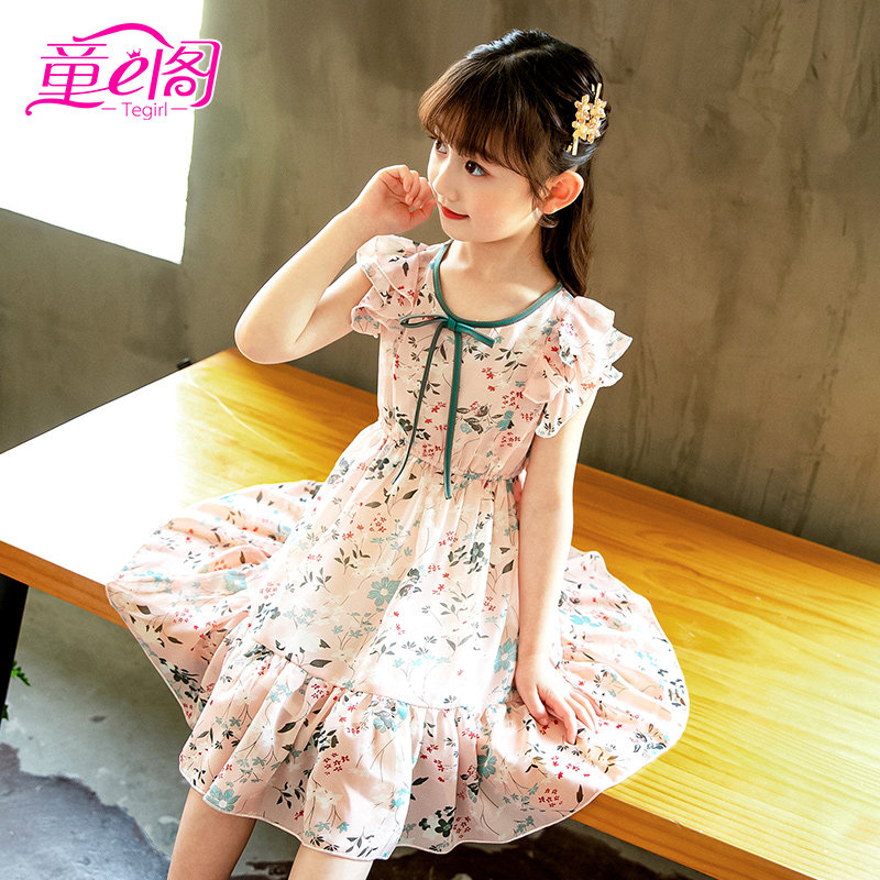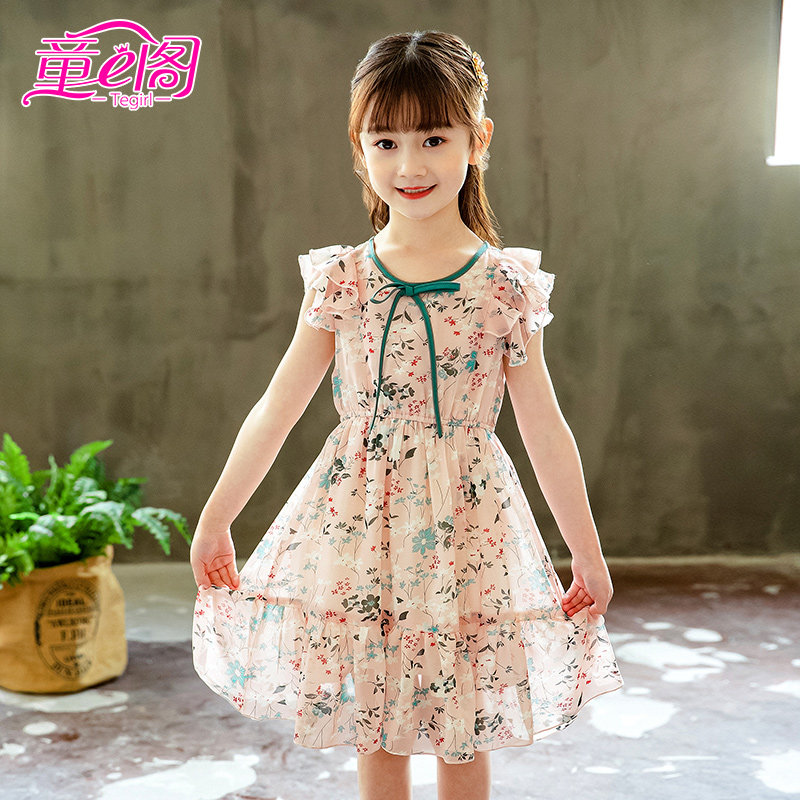 Children's skirts 2022 Summer-five girls' dress 7 Summer 6 crushed flowers 10 years old girl Korean version 9 Ocean Pie 8