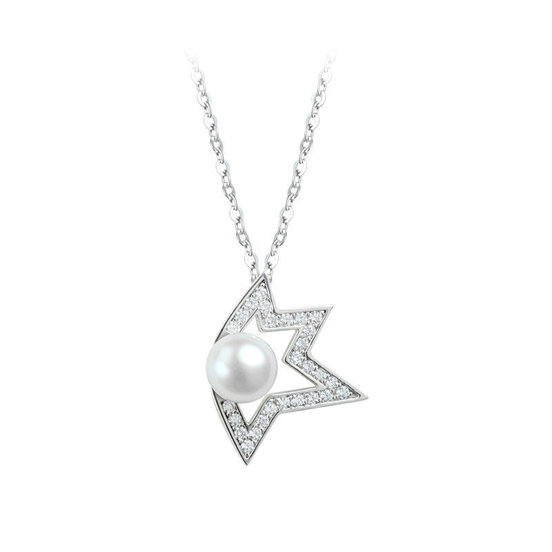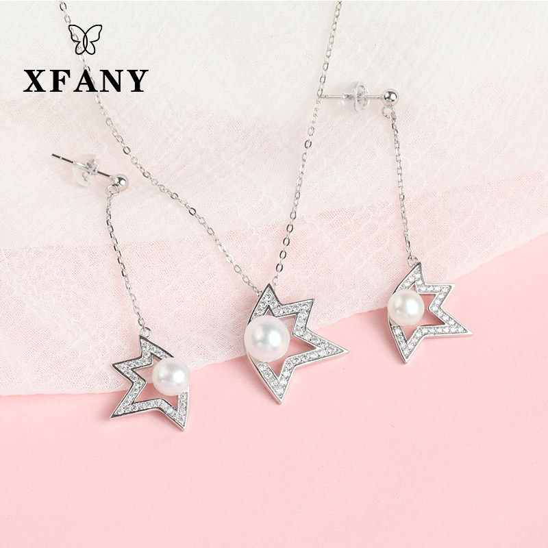 Hicsani pendant earring earrings 925 silver natural fresh water pearl necklace pentagram T home The same Mother's Day